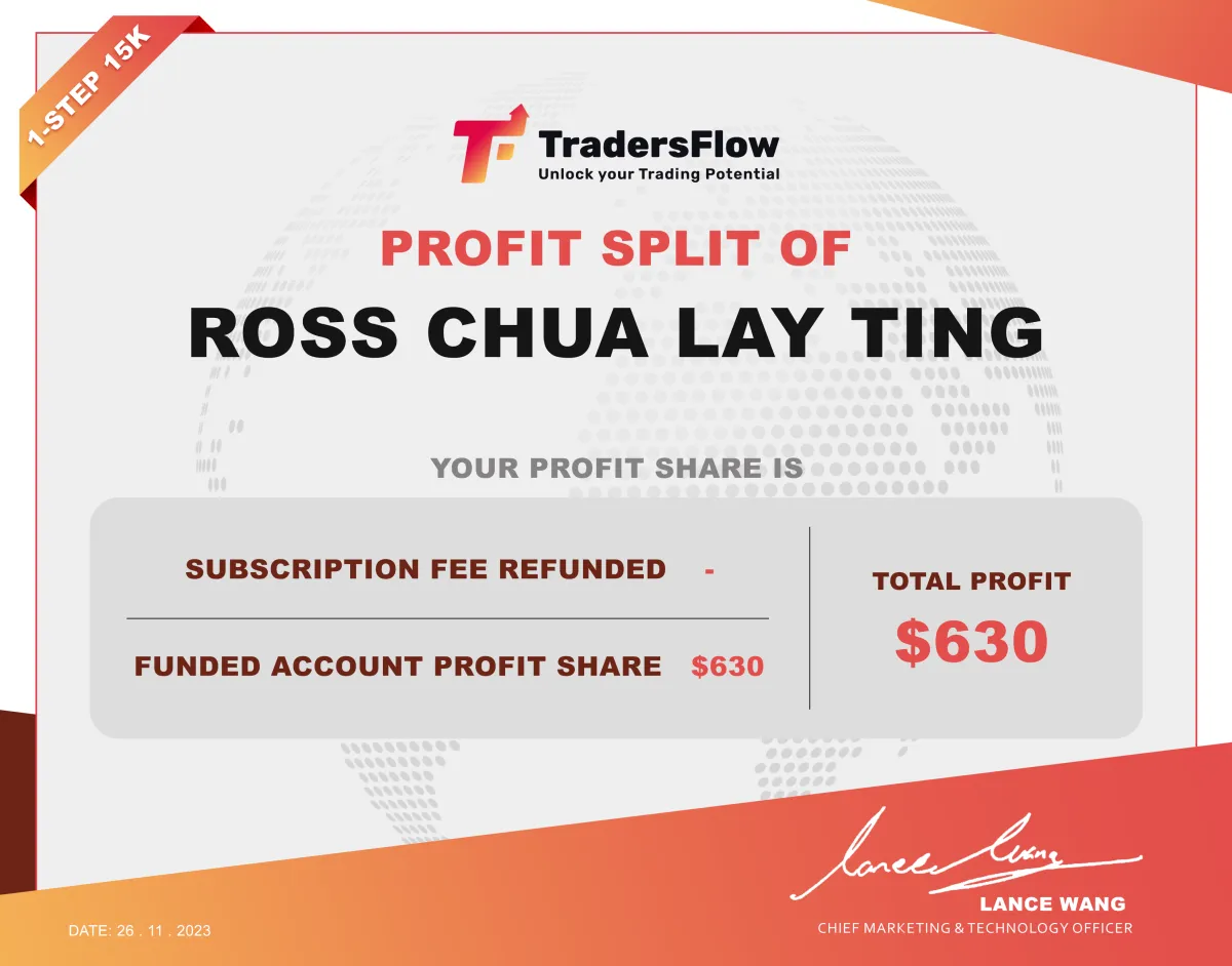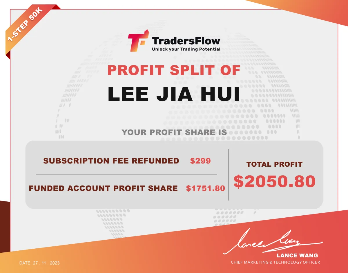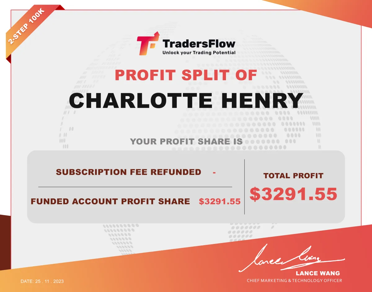 | When you successfully pass the evaluation to become a professional funded trader at TradersFlow and achieve a 5% profit in your live trading account, you qualify for a full refund of the evaluation fee. This refund will be given to you in full during your first profit split. | |||||||
