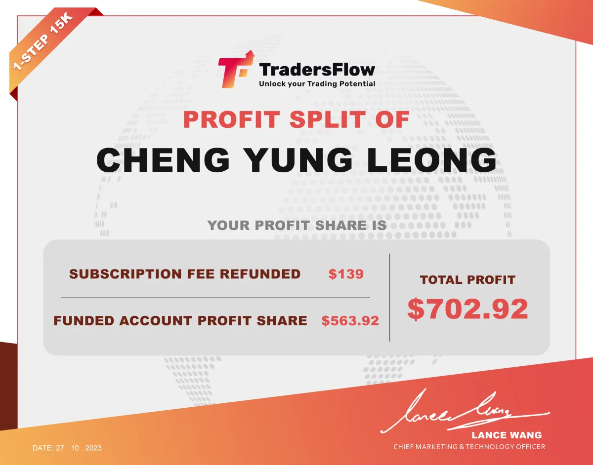全額退回考核費,這將會在您的第一次盈利分成時全額退還給您,以作為邁向成功交易旅程的資助。