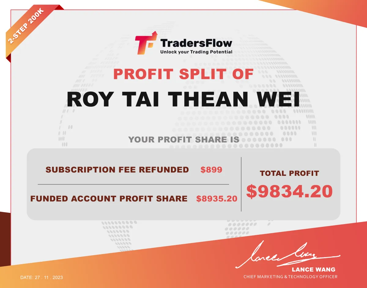 | Traders need to achieve a 5% profit on the second phase challenge account to successfully pass the evaluation and gain access to a live trading account, becoming a professional funded trader at TradersFlow. | |||||||